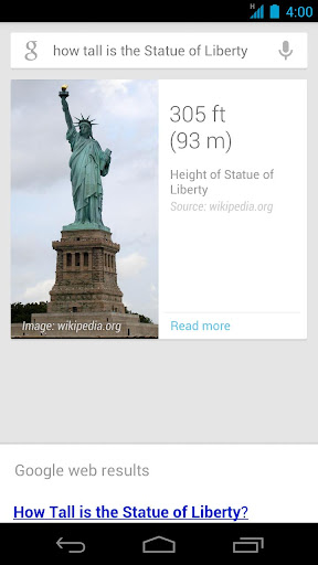 Plus: * Google * Agora você recebe apenas a informação certa no momento certo. Diz-lhe tempo de hoje, antes de começar o seu dia, a quantidade de tráfego que esperar antes de sair para o trabalho, e muito mais (Google agora está disponível no Android 4.1, Jelly Bean).